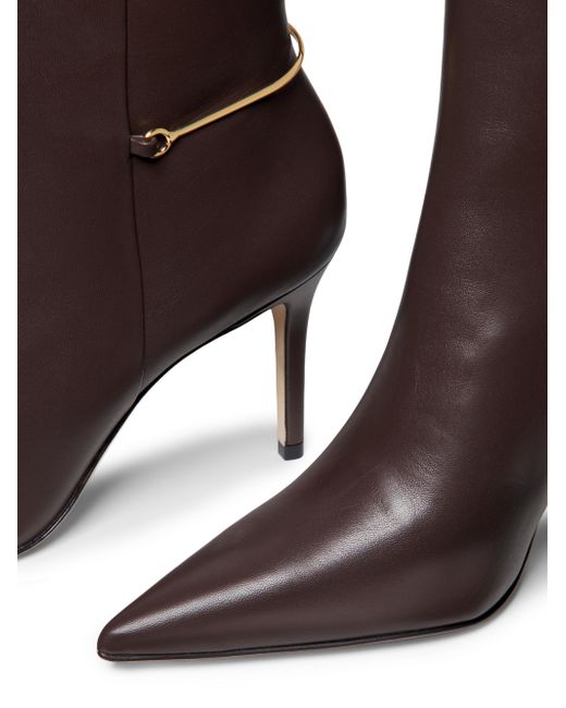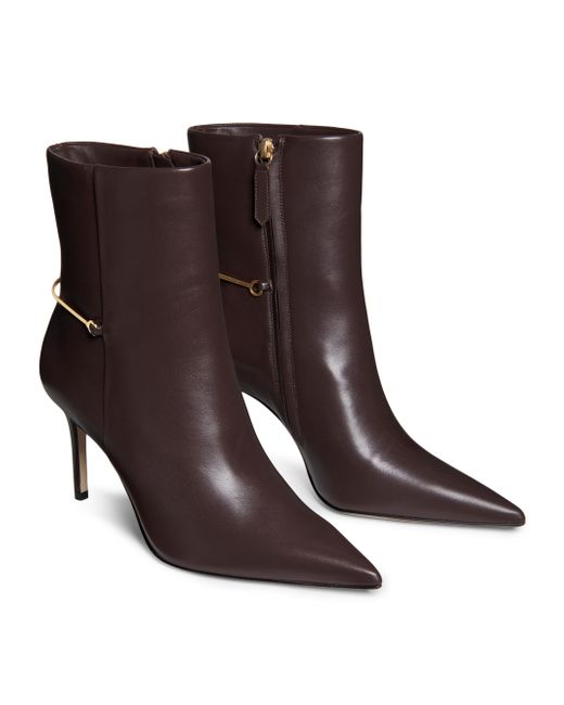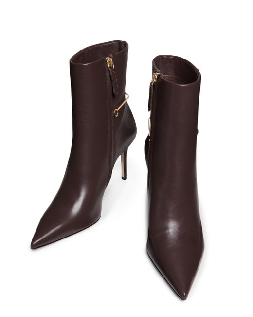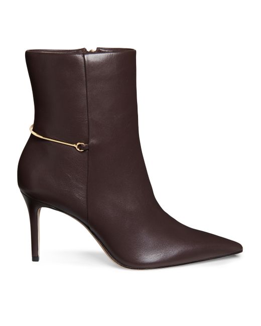 Crafted of supple leather, these booties from 22élevé are designed with a sharp pointed toe, goldtone metal trim, and an 85mm stiletto heel. Point toe Side zip closure Leather upper Textile lining Padded insole Leather sole Imported SIZE Stiletto heel: about 3.25" (85mm) Shaft: about 6" Leg opening: about 11.5". Women's Shoes - Designer Classics > 22élevé > Saks Fifth Avenue. 22élevé. Color: Chocolate. Size: 6.