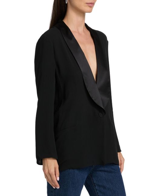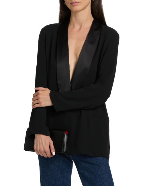 Crafted of luxurious silk, Alberta Ferretti's blazer flaunts satin shawl lapels, long sleeves with button cuffs, and a chest welt pocket. Shawl lapels Long sleeves, button cuffs Chest welt pocket Button-front closure 100% silk Dry clean Imported SIZE & FIT Model measurements: 5'10" tall Model is wearing a US size 4. Designer Evening - G24 Consignment > Alberta Ferretti > Saks Fifth Avenue. Alberta Ferretti. Color: Black. Size: 12.