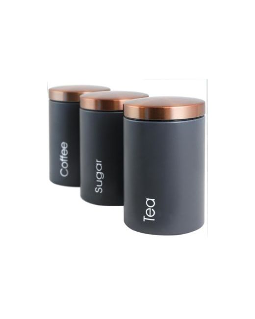 The new MegaChef Essential Kitchen Storage 3 Piece Sugar, Coffee and Tea Canister Set in Matte Gray is a stunning addition to any kitchen. The modern and minimalist design will add a subtle and useful touch of beauty and style to your counter tops. Each canister features an accented Copper Finish lid to enhance the subtle elegance of the matte finish on the canisters bodies. The canisters are conveniently labeled with the following wording for your ease of use and offers a clear display for any guest in your home and kitchen: Coffee, Sugar and Tea.Each of the 3 Canisters included in this set measure in at 6.73 Inches in Height x 4.5 Inches in Width and 4.5 Inches in Depth. The smooth interior finish is easy to clean and maintain, while the lid offers a firm seal to ensure the freshness of your Sugar, Coffee and Tea.