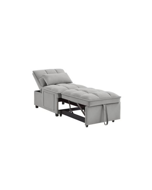 This 4-in-1 single pull-out sleeper chair is designed for modern, compact living. Upholstered in soft velvet and filled with high-density foam, it converts easily from a tufted accent chair to a chaise lounge or bed for one using a smooth pull-out mechanism. The adjustable backrest offers two reclining positions, while side storage pockets keep books, remotes, or tablets close by. Whether you need a relaxing reading spot, a guest bed, or a stylish lounge, this convertible sleeper chair delivers comfort, versatility, and space-saving function-perfect for apartments, dorms, or small rooms.
