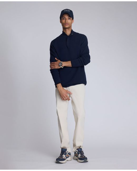 WHAT’S IN IT FOR YOU? Pullover quarter-zip sweater Snap top closure Mock neck Designed for comfort, performance, and durability Long sleeves 100% cotton Machine wash, tumble dry Imported Model Specs: Height 6'1", Chest 38", Waist 30", Inseam 32" | Kenneth Cole | Quarterzip Pullover Sweater in NAVY