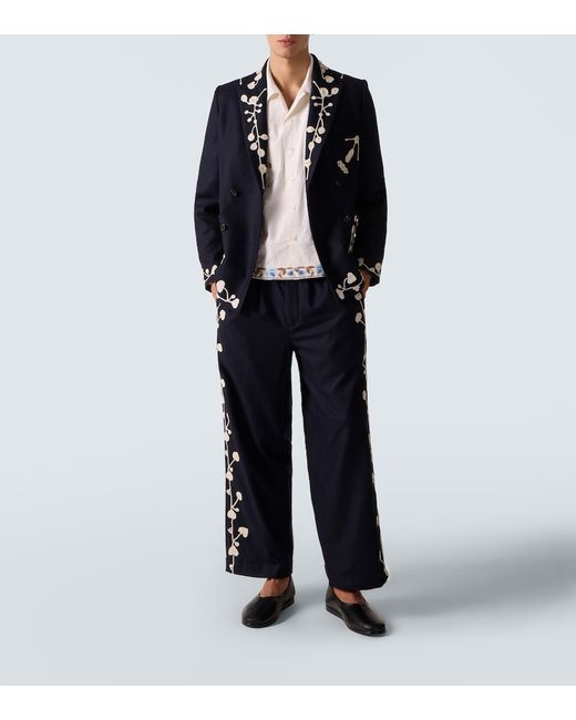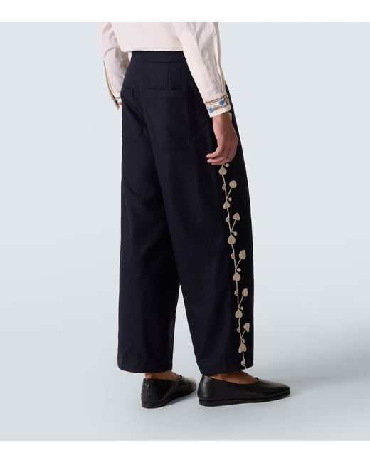 Material: 75% wool, 25% polyamide. Care instructions: dry clean. Made in Romania. Designer color name: Navy. Item color: blue. Lining: 100% viscose. Trim: 100% cotton. Closure: zipper fly, button fastening. Pockets: side slit pockets, back pockets. Adjustable tabs at the waist. Wool.