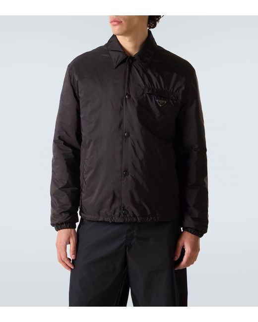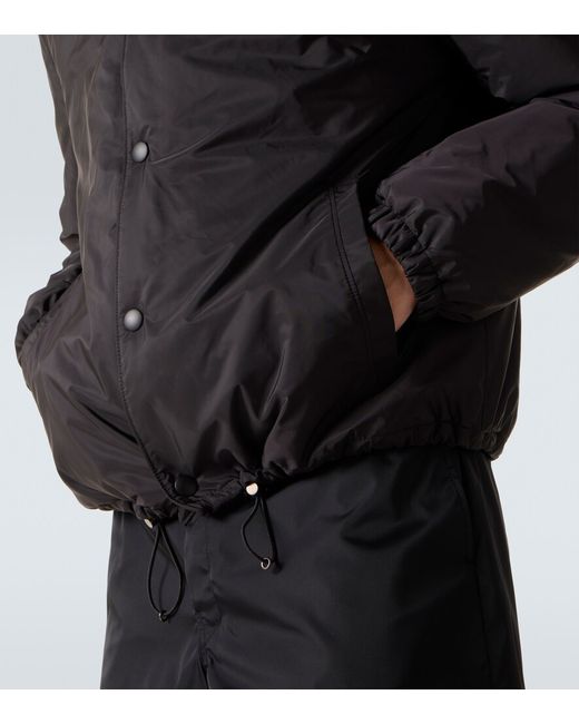 Material: 100% polyamide (recycled). Care instructions: hand wash cold. Made in Italy. Designer color name: Nero. Item color: black. Lining: 100% polyamide (recycled). Filling: 55% polyester (recycled), 45% polyester. Details: 100% calf leather. Contains non-textile parts of animal origin. Closure: snap-buttoned front. Pockets: welt pockets, zipped pocket. Cuff: elasticated. Drawstring at the hem for adjustable fit.