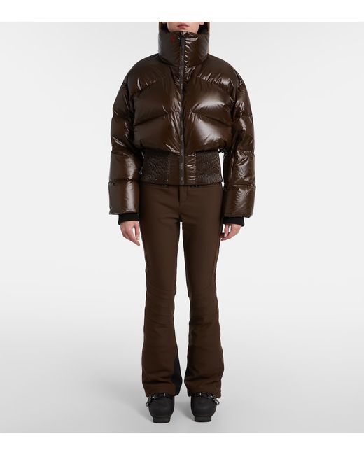 Material: 80% nylon, 20% elastane. Care instructions: machine wash at 30 degrees. Made in Vietnam. Designer color name: Chocolate. Item color: brown. Material II: 94% polyester, 6% elastane. Lining: 100% polyester (recycled). Closure: zipper, snap-button fastenings. Pockets: zipped pockets. Elasticated waistband. Zipped ankle cuffs.