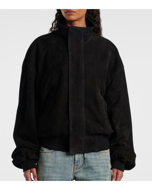 Material: 100% lamb leather (suede). Care instructions: specialist clean. Made in Turkey. Designer color name: Black. Item color: black. Trim: 89% cotton, 9% polyamide, 2% elastane. Lining: 100% cotton. Pocket lining: 100% cotton. Embroidery: 100% polyester. Contains non-textile parts of animal origin. Cuff: ribbed. Pockets: buttoned pockets. Closure: zipper, snap-button fastenings. Hem: ribbed. Leather.