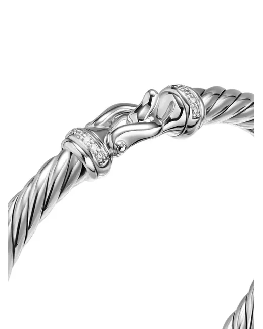 sterling silver polished finish rope detailing pavé-setting round-cut diamonds totaling 0.14 carats Normal everyday use and external agents may reduce the lustre of gemstones and gold surfaces. To maintain, use specific, non-abrasive products specially meant for cleaning jewellery. To ensure the shine and polish of your David Yurman piece, wash with a little non-bleach, soapy water and wipe clean with a soft cloth.