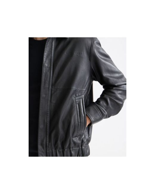 Crafted from quality leather, this Scotch & Soda jacket features a boxy blouson silhouette that exudes contemporary edge. Designed with a button-and-zip closure and side pockets, it offers both style and practicality for versatile, elevated wear.