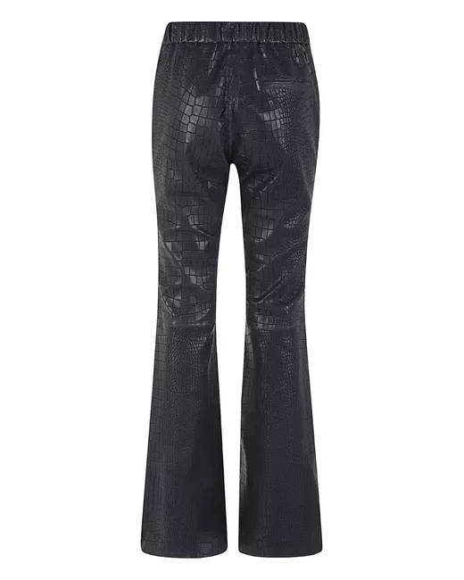 black croc-embossed effect elasticated waistband flare leg panelled design back pocket