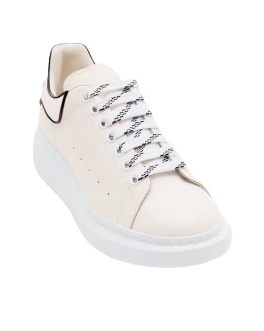 Lightweight leather sneakers in a sleek platform design boast eye-catching leather color tab detail. Leather upper Round toe Lace-up vamp Leather colored tab Rubber sole Made in Italy SIZE Platform sole, 1.75" (45mm) This brand fits slightly larger. Consider ordering half a size down. ABOUT THE BRAND Visionary designer Lee Alexander McQueen launched his brand in 1992, which quickly became synonymous with cutting edge, avant-garde design. Creative Director Sean McGirr has continued the designer's legacy, bringing precision craftsmanship and a sharp attention to detail to the brand's menswear and iconic sneakers. Men's Shoes - A Mcqueen Mens Footwear > Mcqueen > Saks Fifth Avenue. McQueen. Color: Cream Black. Size: 6.