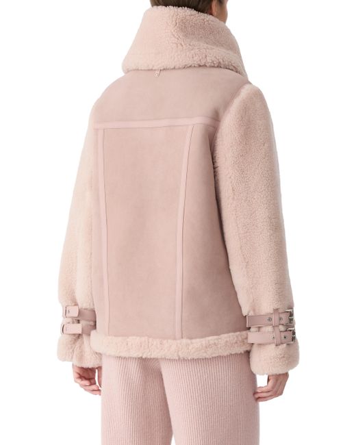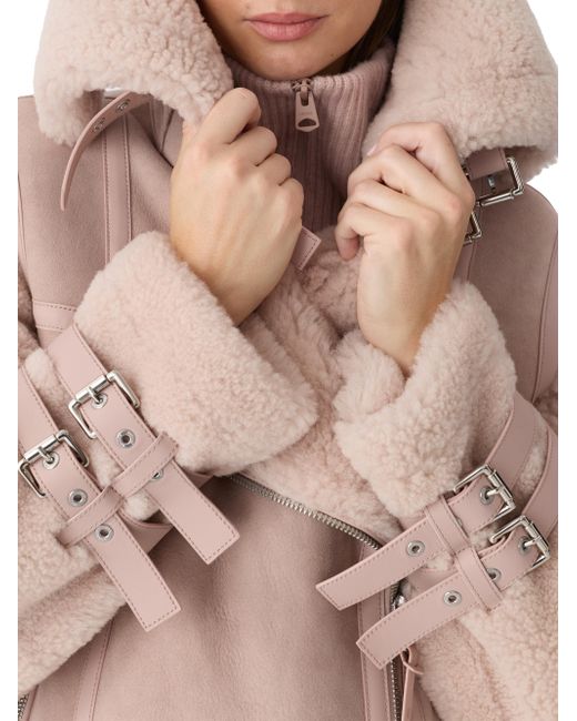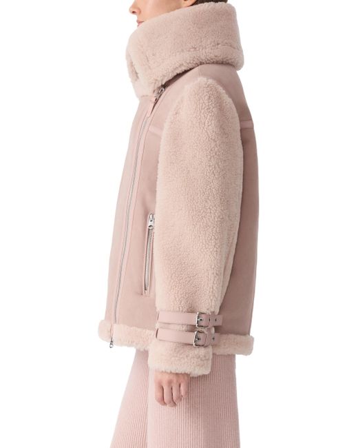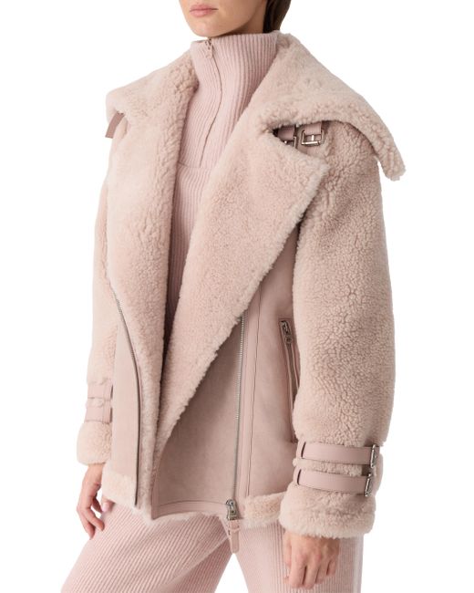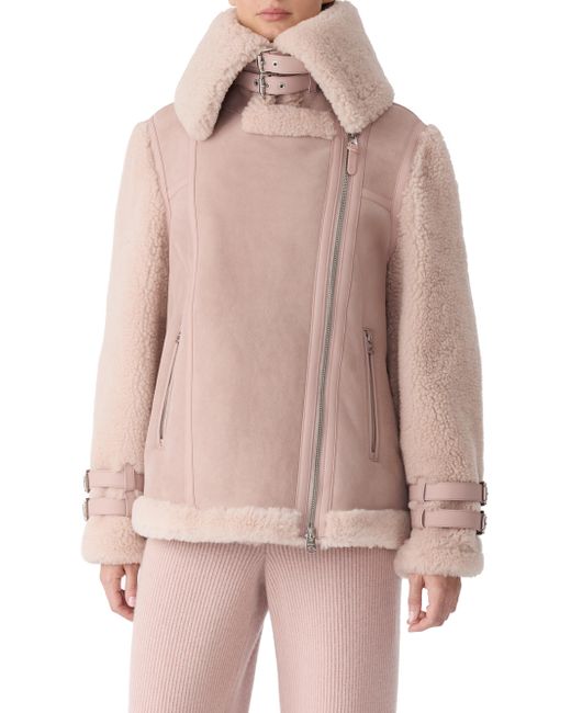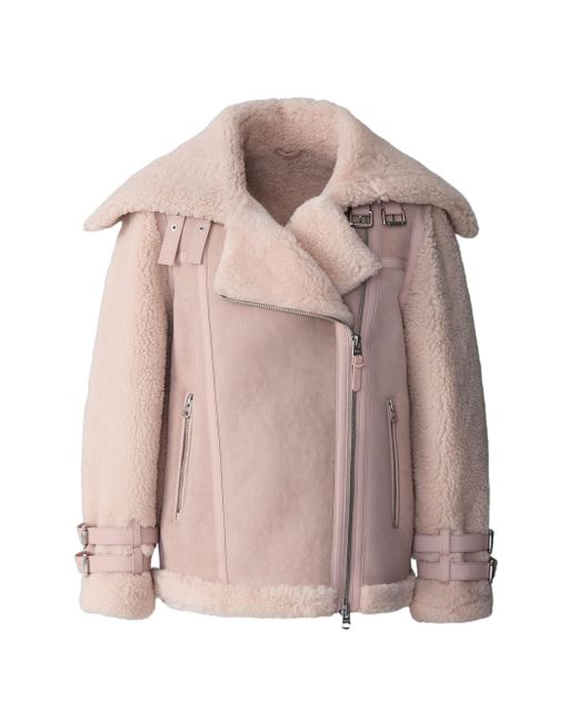 This Rhoslyn oversized moto jacket from Mackage is crafted of plush shearling and designed with an asymmetrical front zip and bold sailor collar. Sailor collar, double-buckle strap closure Long sleeves, double-buckle strap cuffs Side zip pockets Front two-way zip closure 100% suede Sleeves and trim: 100% shearling Fur type: dyed shearling Fur origin: China Dry clean Imported SIZE & FIT This style is designed for a relaxed fit About 25.75" from shoulder to hem Bust: about 46" Model measurements: 5'10" tall Model is wearing a US size Small ABOUT THE BRAND Founded in Montreal in 1999, Mackage began as a comprehensive outerwear brand offering everything from fine leather jackets to tailored wool coats and down parkas. The label evolved to develop superior construction and comfort, creating flattering and elegant silhouettes. Mackage is committed to quality and performance with an eye toward aesthetic innovation in its women's, men's and kids' designs. Outerwear And Swimwear - Down > Mackage > Saks Fifth Avenue. Mackage. Color: Sepia Rose. Size: Small.