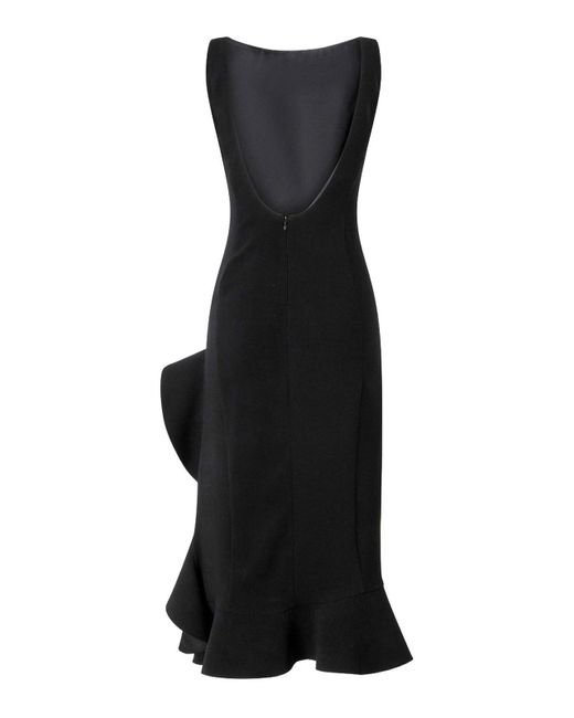 Black sleeveless boat neck midi length open back