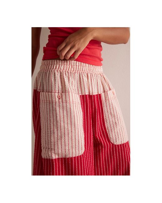 Made for lazy mornings, pillow fights, and ordering in, these balloon lounge pants from Intimately feature a gorgeous, two-toned seersucker fabrication, large pockets that can be worn on the front or back, and a slightly-cropped, gathered leg silhouette for an elevated take on a relaxation staple. * Seersucker, cotton-blend fabrication * Pull-on, balloon pant style * Elastic waistband * Large pockets with button closure Room Service Pants by Intimately at Free People in Red Combo, Size: XS