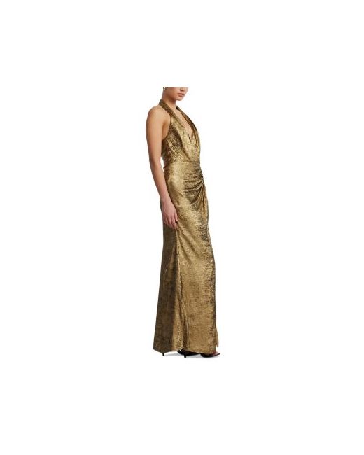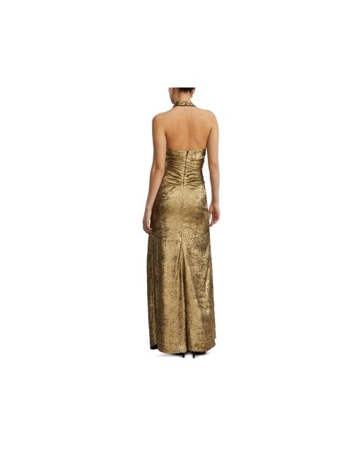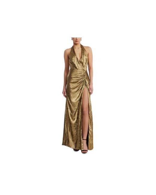 Bcbgmaxazria Lame Halter Gown.Color:Gold.Size:0.Material:100% polyester.Dresses.