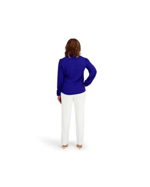 Ruffle sleeve detailing adds feminine flair to this V-neck blouse from Kasper. The long sleeves provide coverage while creating elegant movement with each wear.