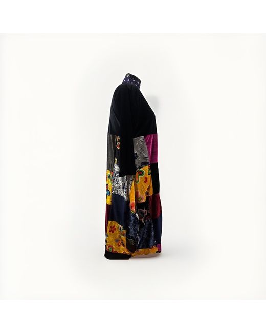 This Plus One Size 18-24 Handmade Designer Patchwork Velvet Gypsy Bubble Hem Dress is a unique, colourful and hippie-inspired garment perfect for various occasions such as travel, weddings, parties, or casual wear. Made from velvet with a scoop neckline and long sleeves, this dress features a bubble hem for added flair. The patchwork design adds a bohemian touch, while the oversized fit and high waist give it a trendy and comfortable look. Handmade in the United Kingdom, this dress is a one-of-a-kind piece that reflects a free-spirited, gypsy style. Will comfortably fit uk sizes 18-24 46” long