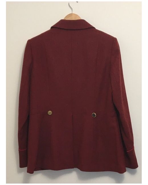 Light Herringbone pattern. Button closure. Concealed button fastening. to back hem vent. Approx length from nape to hem 70cm.