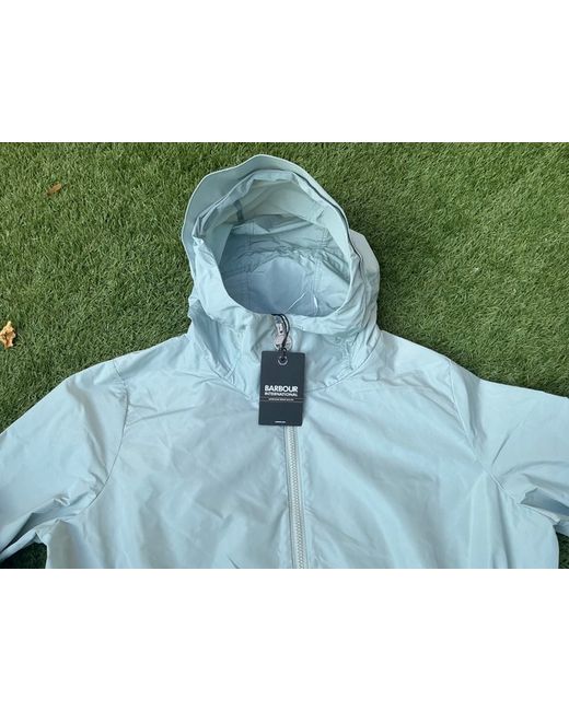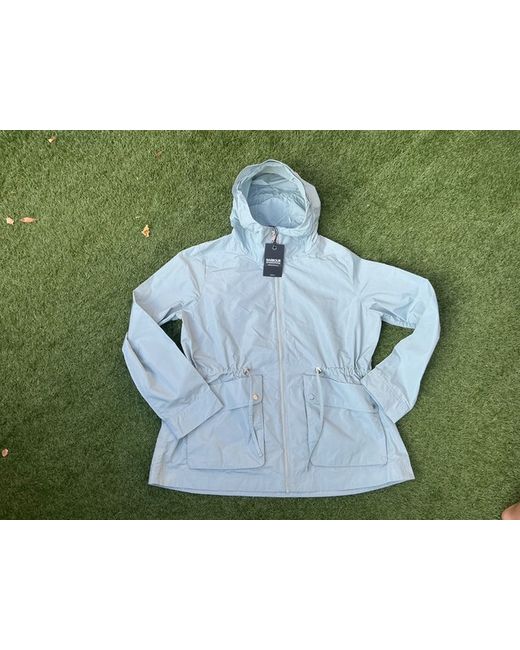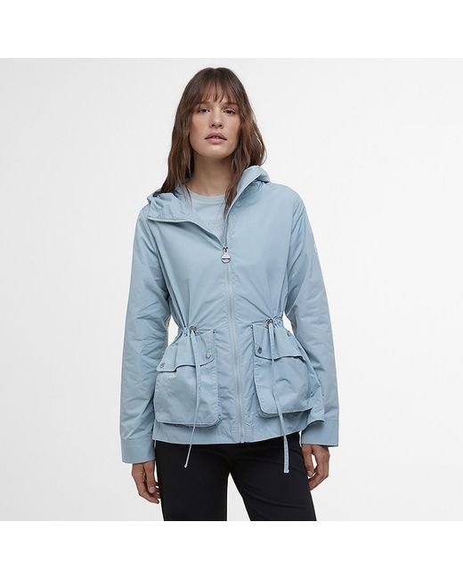 An unlined lightweight showerproof jacket with fixed hood, double entry patch pockets, waist drawcord and a full-length centre front zip closure. Machine wash 30°C.