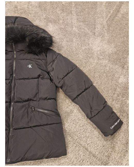 This Calvin Klein Women's Puffer Jacket in size small (UK 8) is a stylish and practical choice for the winter season. Made from polyester with a down insulation, it provides warmth and comfort while maintaining a sleek mid-length silhouette. The black colour and logo accents add a touch of sophistication to the casual jacket, making it versatile for everyday wear. With a zip closure and machine washable design, this jacket offers both style and convenience for the fashion-forward woman.