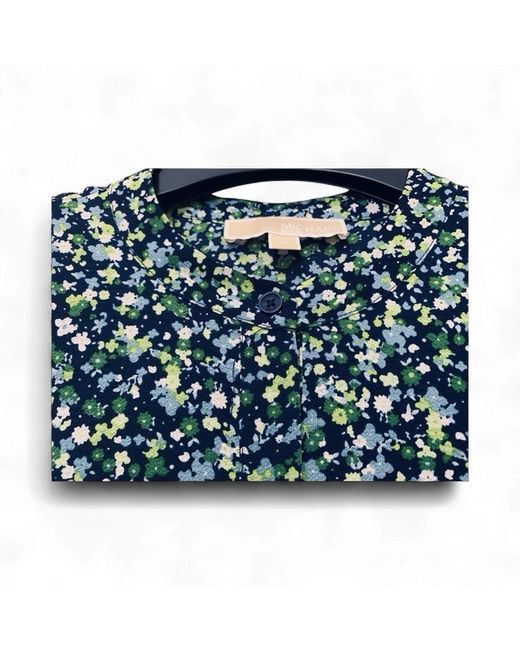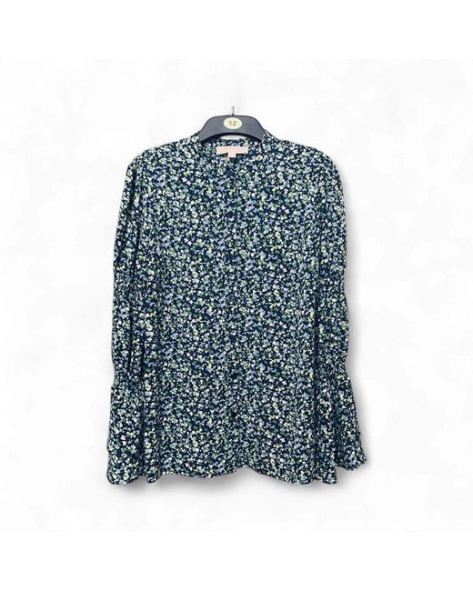 This Michael Kors women's blouse top in size medium features a round neckline, long bell sleeves, and a casual occasion style. Made from a polyester blend, the top is in a stylish blue colour, perfect for the festive season. Easy to care for with machine washable instructions and no need to iron, this regular fit beautiful blouse offers a basic yet chic style suitable for everyday or occasional wear. The brand's quality and design make it a versatile addition to any woman's wardrobe. Please feel free to massage me if you have any questions. Thank you for looking