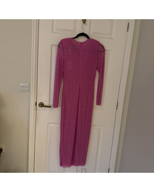This £595 Self Portrait Pink Rhinestone Hotfix Maxi Dress in size 10 is a stunning piece perfect for a special occasion or summer event. The long sleeve and zip closure add a touch of elegance, while the vibrant pink colour and rhinestone accents shimmer in the light. With its long dress length and brand pedigree, this dress is sure to make a statement and turn heads wherever you go.