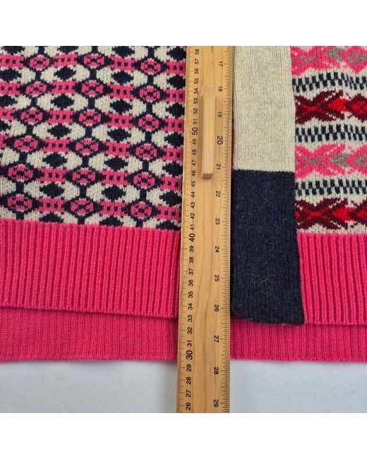 This vibrant cardigan showcases a unique patchwork design featuring a variety of patterns in bright pink, red, navy, and cream tones. The cardigan is versatile and ideal for adding a pop of color to any outfit.