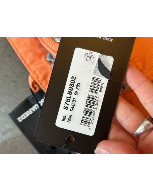 These Dsquared2 trousers in size 8 are perfect for a casual occasion with their flat front design and regular fit. The orange colour adds a pop of vibrancy to your outfit, while the skinny style gives a modern and sleek look. Made in Italy, these trousers are a stylish addition to any woman's wardrobe, representing a perfect blend of fashion and comfort. The Dsquared2 logo accents add a touch of luxury to these versatile trousers, making them ideal for wearing in the spring season.