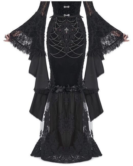 Women's Black Lady Dark Devore Baroque Gothic Velvet Chained Mermaid Skirt