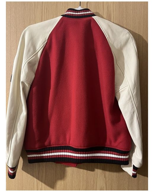The Classic Varsity Jacket in Red and White by Coach exudes a timeless and stylish appeal. Made from a blend of 80% wool and 20% polyamide, this women's jacket is perfect for casual occasions during the winter season. With its vintage feel and varsity theme, this jacket is a versatile addition to any wardrobe. The red and white colour scheme adds a classic touch to the regular fit, making it a must-have piece for those looking for a chic and comfortable outerwear option.