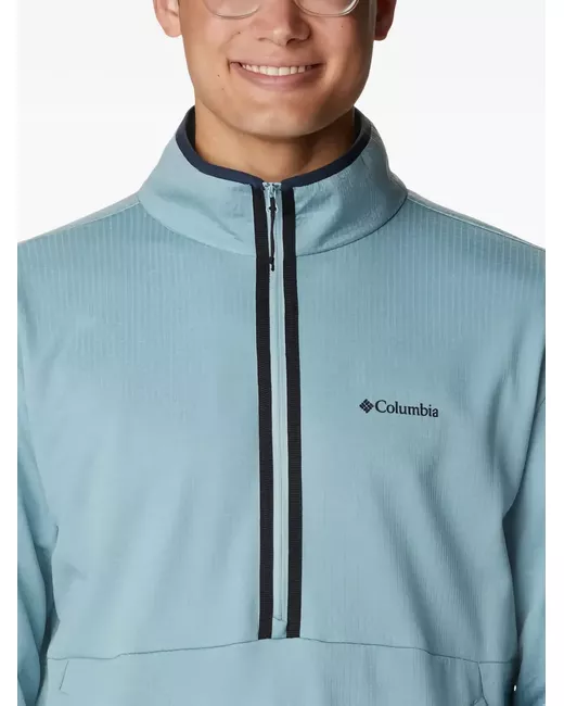 light-blue half-zip fastening kangaroo pockets long sleeves