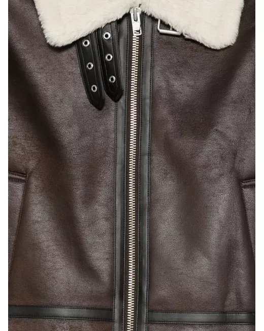 brown shearling trim front zip fastening buckle detail side welt pockets panelled design