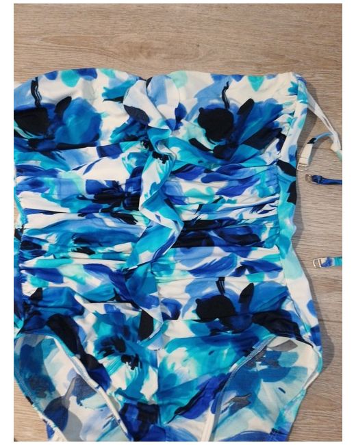 The Miraclesuit Bandeau with Straps Underwired in size 18 is a stylish one-piece swim top designed for women. The bandeau style with spaghetti straps and underwired bra provide a flattering fit and support. The top is ideal for those looking for tummy control features and comes in a flattering blue colour. Made by the brand Miraclesuit, this swimwear is perfect for a regular size 18 woman who wants to look and feel great at the beach or pool.