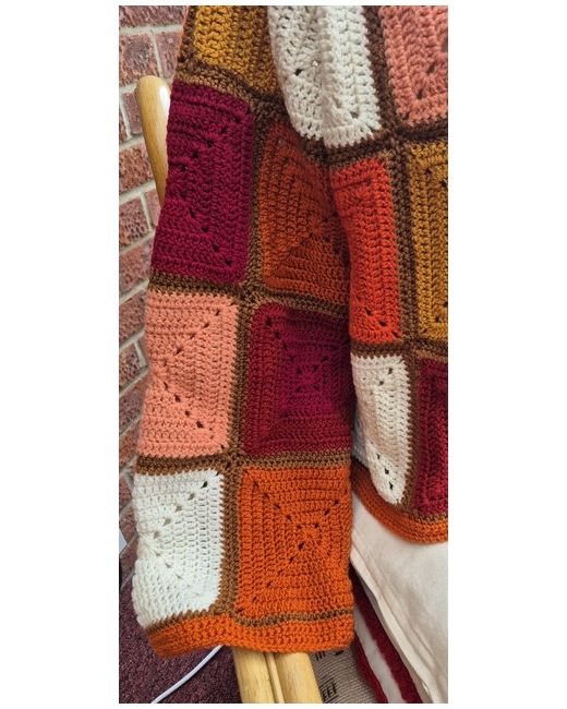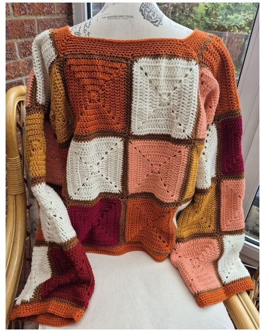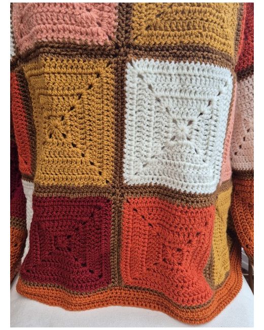 This handmade crochet patchwork jumper in autumn colours is a unique and stylish addition to any wardrobe. With a square neckline and long sleeves, this jumper is perfect for casual occasions in the autumn and winter seasons. Made from acrylic yarn, Machine Washable at 30°, this multicoloured jumper is sure to stand out. Handmade in the United Kingdom, this jumper is of high quality and is a perfect choice for snuggly, cosy days. Length - 60cm ( approx 23 1/2" ) Bust/Chest - 128cm ( approx 50" ). Sleeves - 51cm ( approx 20" ).