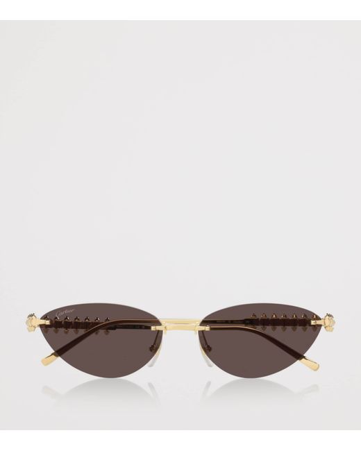 Cartier sunglasses - renowned for their exquisite craftsmanship and iconic designs - epitomise the pinnacle of elevated eyewear. This iteration, for example, showcases subtle cat-eye lenses that complement the elegance of the gold-tone metal frames, accented with the signature Cartier motif.