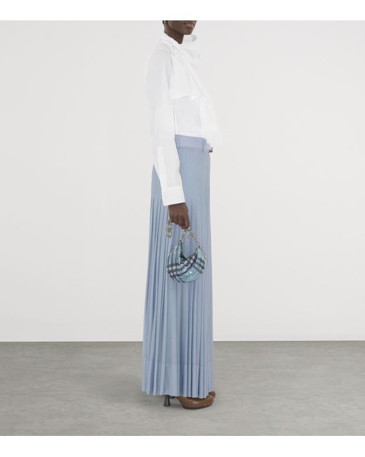 In a reimagining of traditional House codes, Burberry offers a striking shoulder bag crafted from metallic mesh, evoking the brand's trademark check design with a contemporary, flashy flair. Its straps are looped with a gold-tone T-bar fastening - a sought-after favourite in antique and vintage design - to create the signature ‘b' motif in a subtle nod to the storied heritage which underpins the brand's innovative craftsmanship.