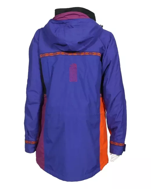 blue geometric detailing hooded long sleeves front button fastening elasticated hem
