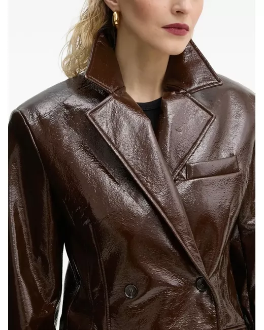 brown lapel collar double-breasted button fastening front flap pockets belt loops