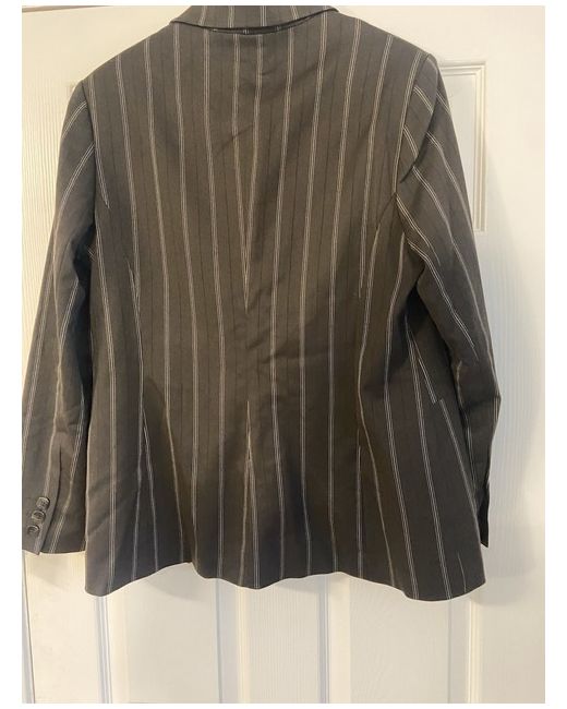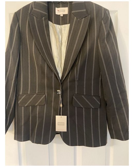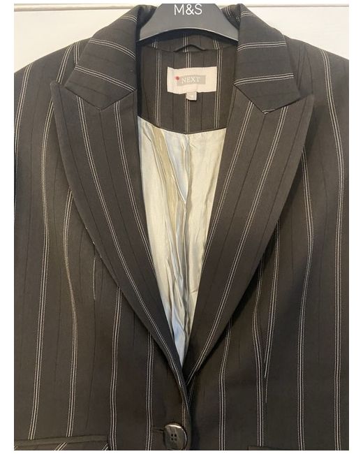 The Next Brown Pinstripe Suit is a stylish and versatile business outfit for women. Made from polyester material, this suit features a regular fit with long sleeves and a single-breasted jacket cut. The pinstripe pattern adds a touch of sophistication, while the brown colour gives it a classic and timeless look. This trouser suit from Next is perfect for any professional occasion, offering a smart and polished appearance. Designed in China, this suit is in size 16 and is a great addition to any woman's wardrobe. Brown pinstripe next suit - size 16. Jacket still has labels on but trousers do not but never been worn. Trousers are flared/slightly wide leg. UK buyers only- no returns