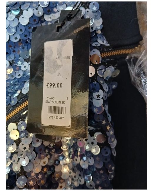 This Biba skirt oozes party glamour. Blue and silver exquisite sequins with star pattern detailing. Elasticated band waist. Excellent quality. Back hem split. This garment truly has the WOW factor. 30" Waist Maxi 32" Length. New with tags - £99. Perfect for party season. Great price. More images to be added soon x