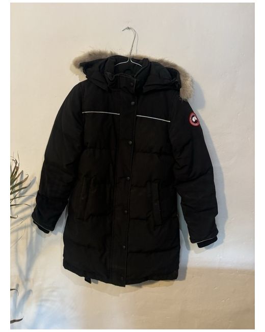 Black parka canada goose is a kids coat size 14-16 but would fit a size 6/8. Jusr got it professionally cleaned so looks brand new