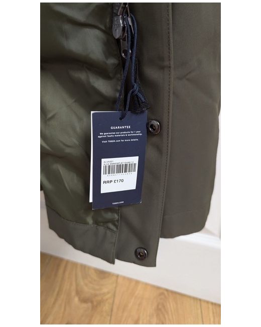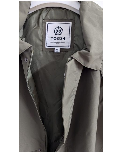 Tog 24 Alva khaki trench coat style jacket. Zip off hood. Two way fastening with concealed press studs.