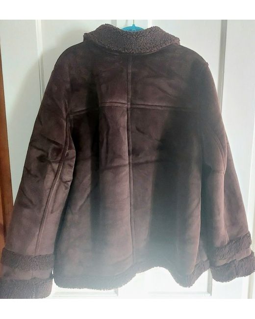 Size 22UK. -shearling texture and a classic button-through design. -face: 94% polyester 6% spandex. - length from top of shoulder 27". -collared neckline.