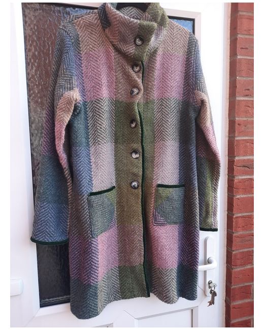 A rare find, it’s perfect for all seasons, combining elegance with warmth and comfort. Emma Tweed Herringbone Coat - Donegal Loden. Pattern: Multi-coloured herringbone weave in rich, bright tones. Trim: Velvet detailing on pockets, cuffs, and long edges for added luxury.