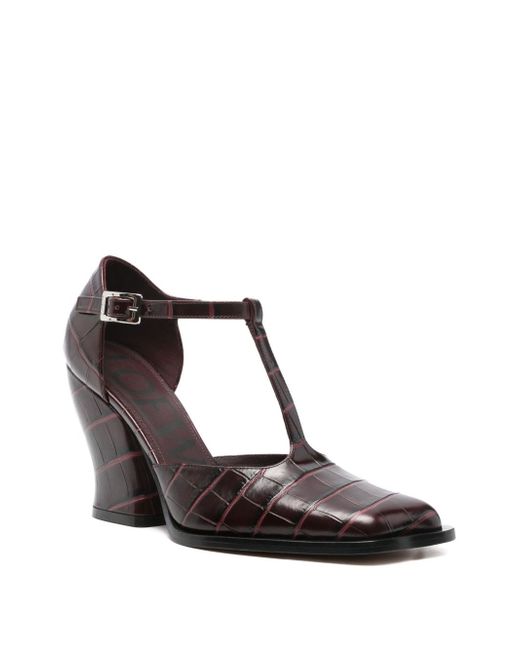 Onda Croc-Embossed Leather T-Bar Pumps