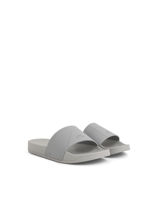 Essential slides in light grey with upper designed to hug your foot and made with the classic ACW* bracket logo embossed on the side. • Composition:100%Rubber • Embossed logo to the front • Open toe • Slip-on style and flat rubber sole. SKU: ACWUF072 LG