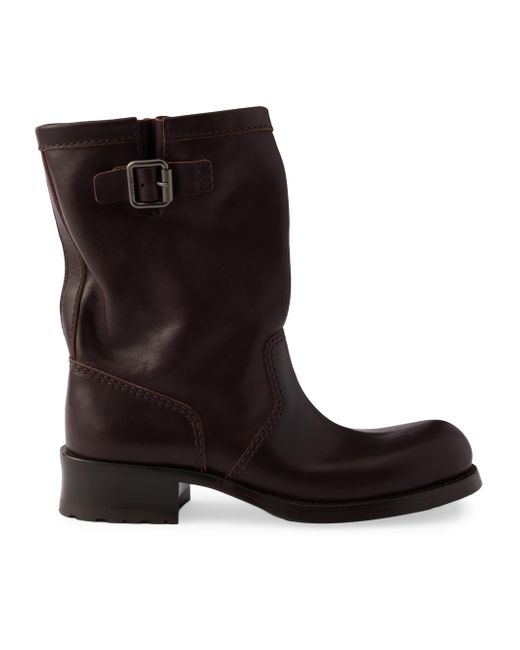 Upper with logo-engraved metal buckle Hot-stamped logo Boot leg: 22 cm / 8.7'' Leather and monoblock rubber sole with hot-stamped logo Heel height: 40 mm / 1.6'' Imported 100% Calf Leather. Lsd Rtw - Prada Rtw > Prada > Saks Fifth Avenue. Prada. Color: Dark Brown. Size: 4.5.