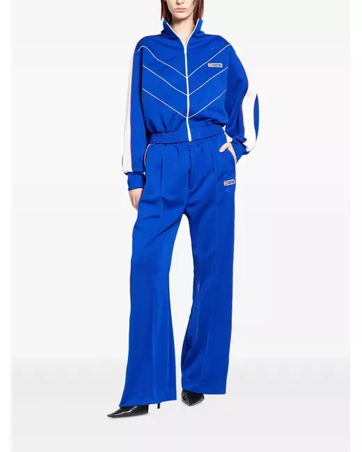 blue logo patch zip fastening high neck elasticated hem stripe detail