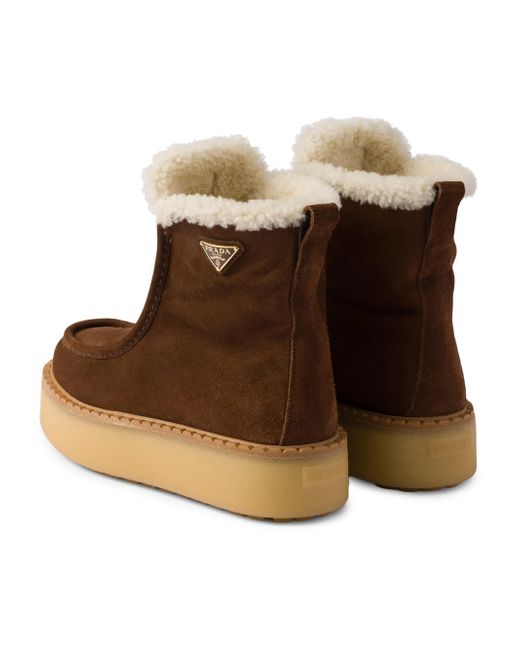 Shearling lining Enameled metal triangle logo Boot leg: 14 cm / 5.5'' Rubber sole, 50 mm / 1.9'' Lug tread Leather welt Removable shearling-covered insole 100% Calf Leather Fur Type: Sheep Fur Origin: Portugal Fur Treatment: Dyed Imported. Lsd Rtw - Prada Rtw > Prada > Saks Fifth Avenue. Prada. Color: Brown. Size: 5.5.
