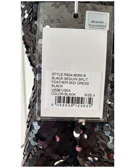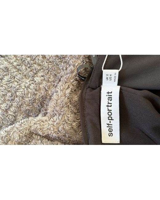 The Self-Portrait dress in size 8 is a sophisticated and elegant choice for a party or cocktail event. Made from black polyester lace, this knee-length ballgown exudes a timeless charm. The dress features a zip closure, making it easy to wear, and is perfect for Christmas occasions. Designed by the reputable brand Self-Portrait, this dress is a luxurious addition to any woman's wardrobe, offering both style and quality. this dress is a must-have for those looking for a chic and sophisticated outfit.