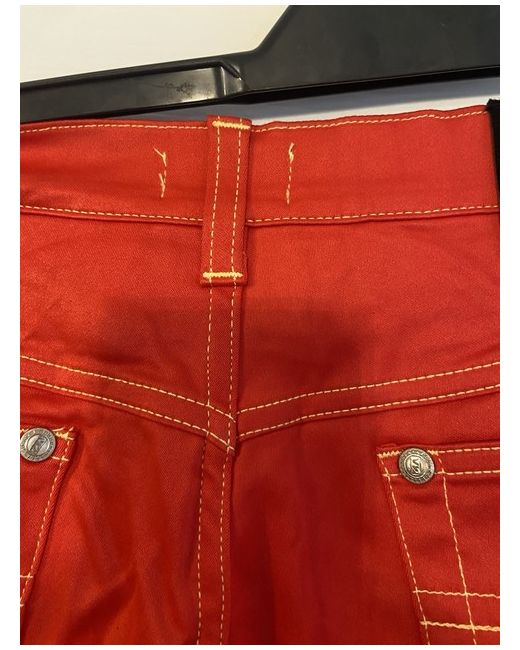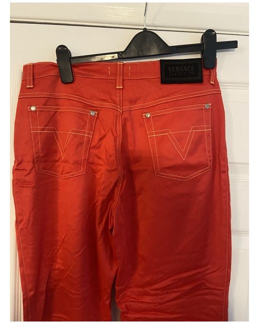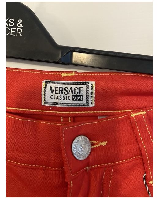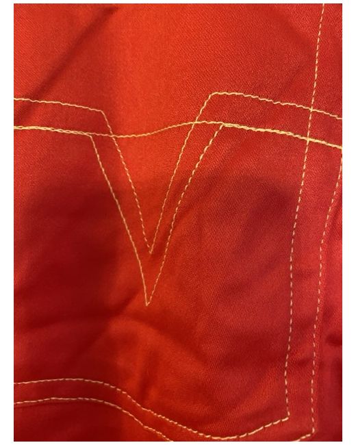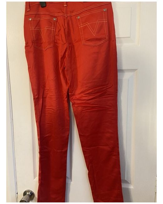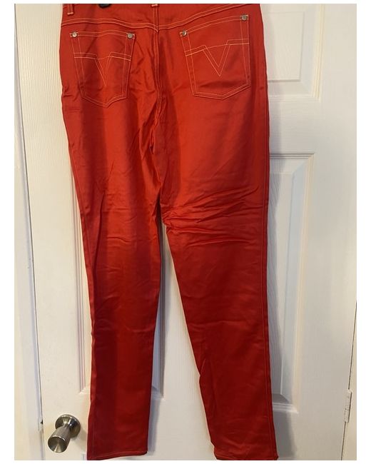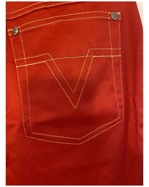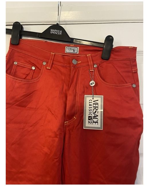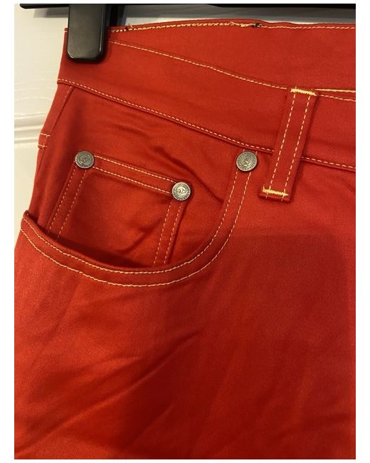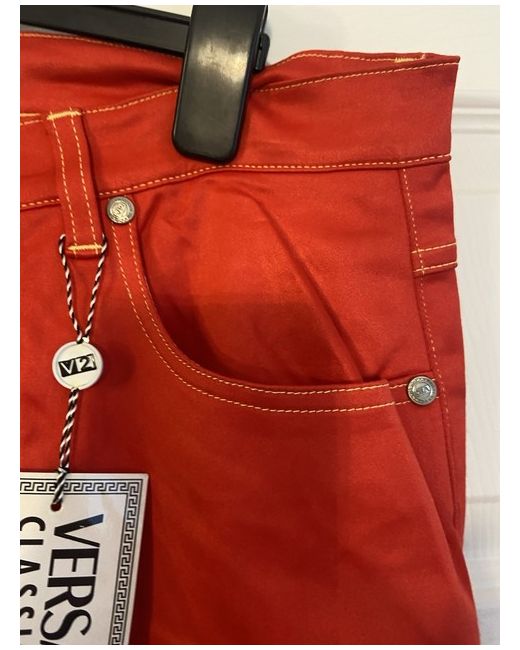 The Versace Red Jeans are a vintage pair of women's jeans made from cotton denim. These straight-cut jeans feature a zip closure, machine washable fabric, and a classic 5-pocket design. With a vibrant red colour and a size 42, these versatile jeans are perfect for the summer and spring seasons. Made in Italy by the renowned brand Versace, these jeans are a stylish addition to any wardrobe for those who appreciate both fashion and quality. Size 32 European about size 14/small 16. Cotton type jeans not thick material. BNWT UK buyers only - no returns
