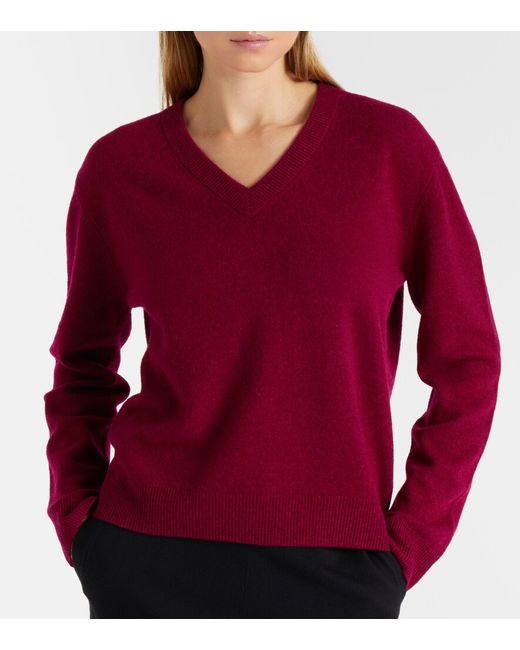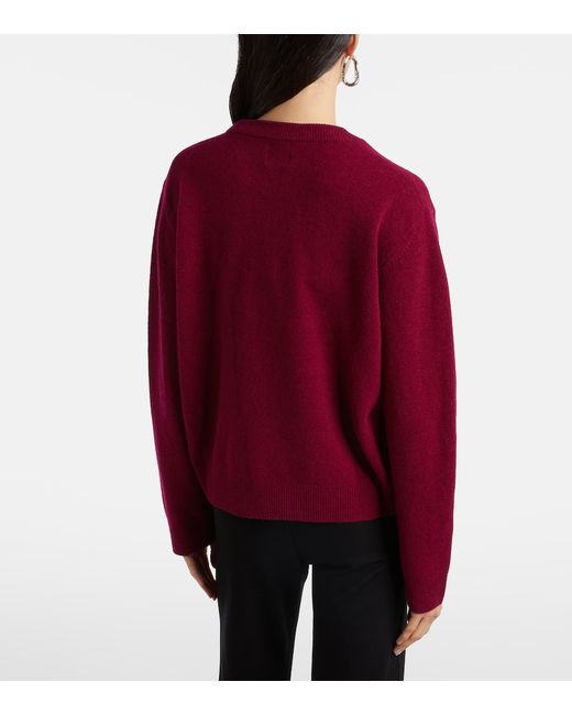 Material: 100% wool. Care instructions: dry clean. Made in China. Designer color name: Mulberry. Item color: burgundy. Wool. Collar: V-neck. Cuff: ribbed. Hem: ribbed.